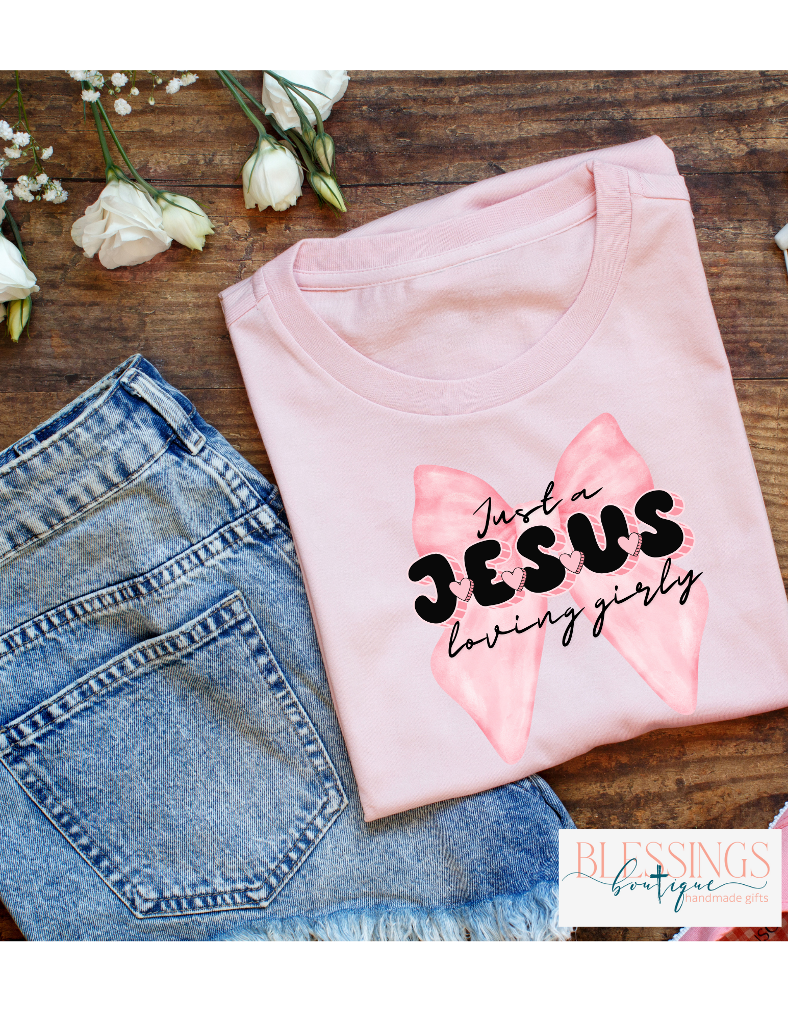 Calling all my Jesus Girls! Just a Jesus loving Girly T-shirt made on your choice of white or pink colored t-shirts. Style this with a fresh pair of Jeans and you are set for the day. Made from Bella Canvas T-shirts. Also available in sweatshirts.